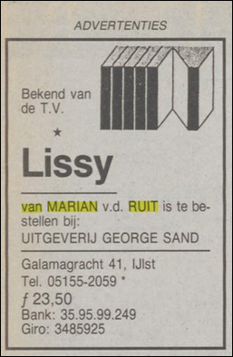 Lissy, haar vierde boek, uitgegeven in 1989. Het verhaal van een oude vrouw die terugkijkt op haar leven, waarin de vernietigingen die de oorlog heeft aangericht in maatschappij en gezin een hoofdrol spelen.