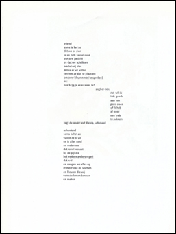 Twee bladzijden uit de doos met vijf houtsneden van Jef Diederen met het gedicht De Deur van Bert Schierbeek en een vertaling van Charles McGeehan.